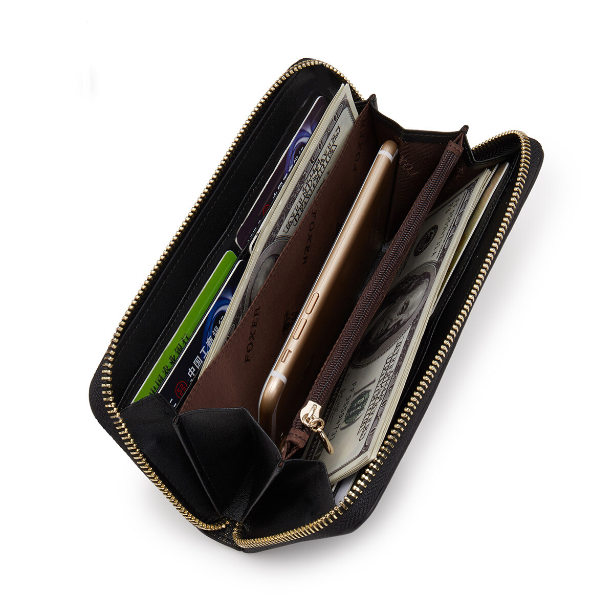 FOXER Women Cow Leather Long Wallet Wallet Clutch Wallet with Wristlet Card Holder Coin Purse Cellphone Bag Female Clutch Bags