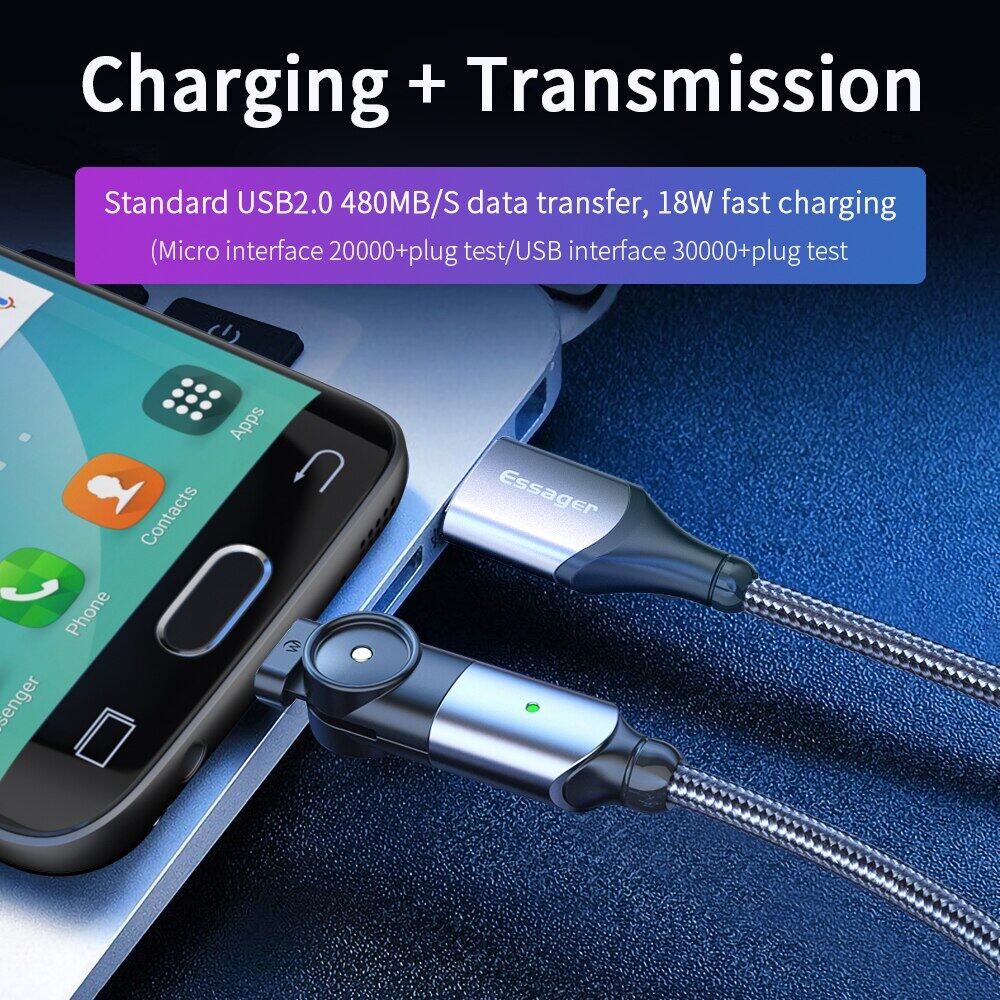 Essager 1.2m/2m 180 Degree Rotate Micro USB Cable for Samsung Xiaomi Oppo Vivo Microusb Fast Charging Android Mobile Phone Data Wire