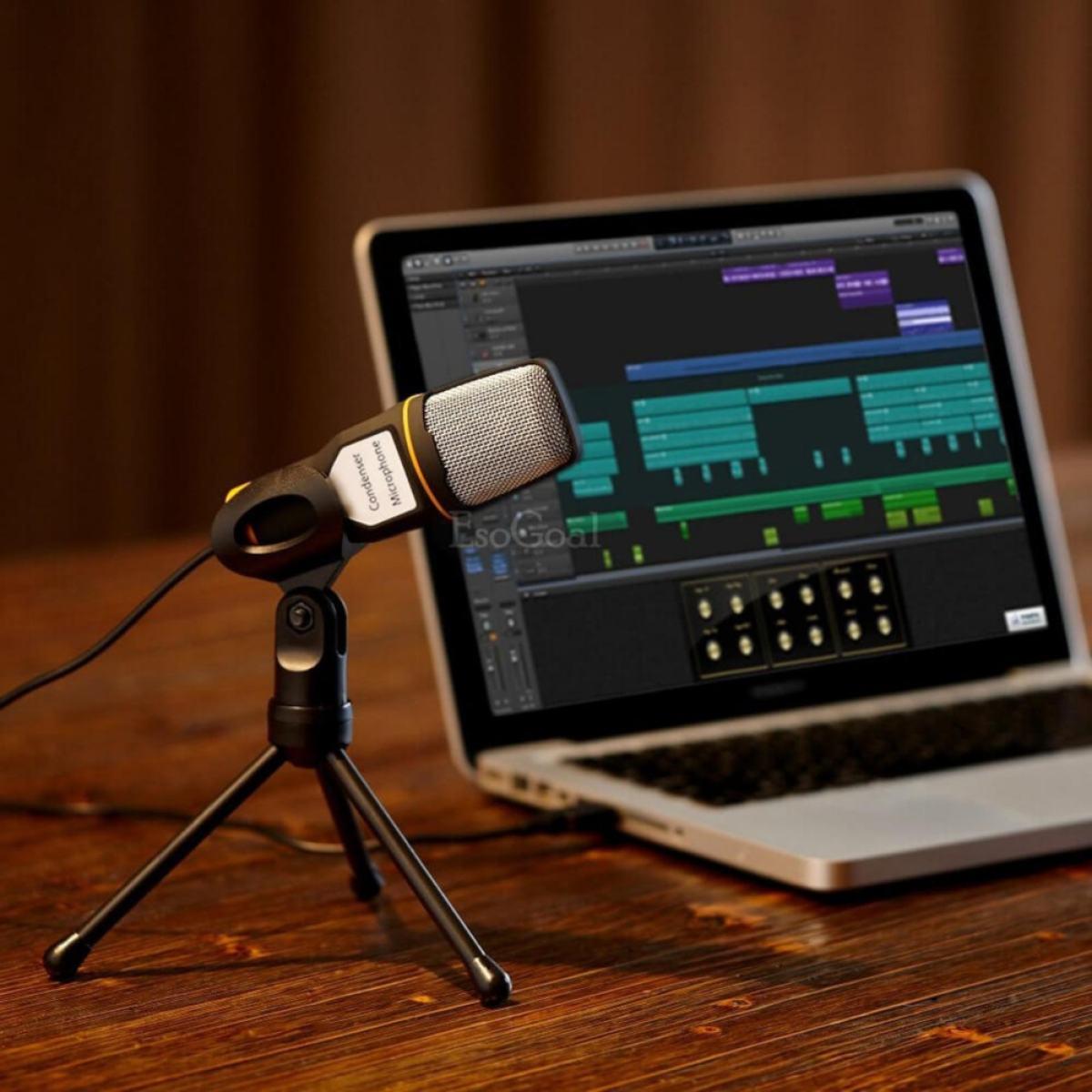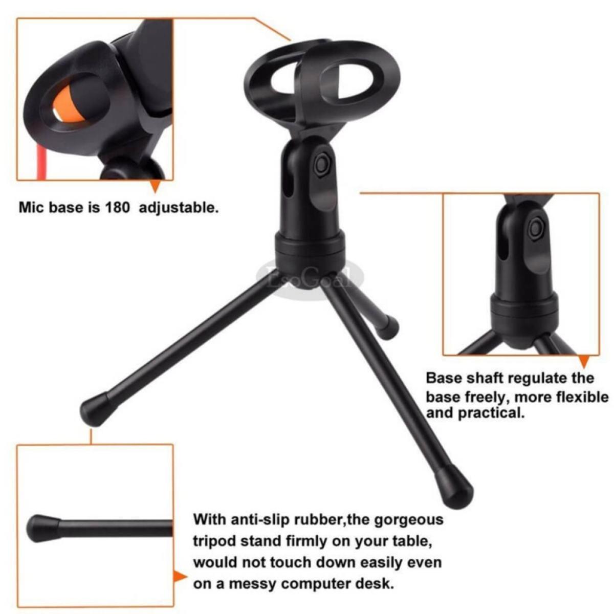 EsoGoal Professional Condenser Sound Podcast Studio Recording Microphone Mic with Tripod Stand for PC Laptop Computer (Black) - intl