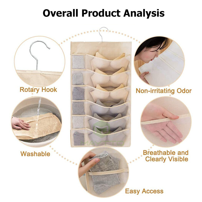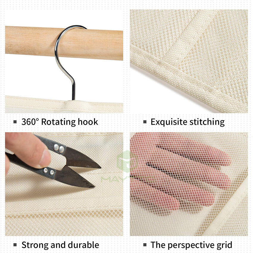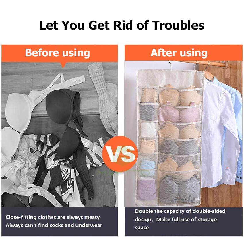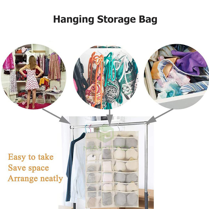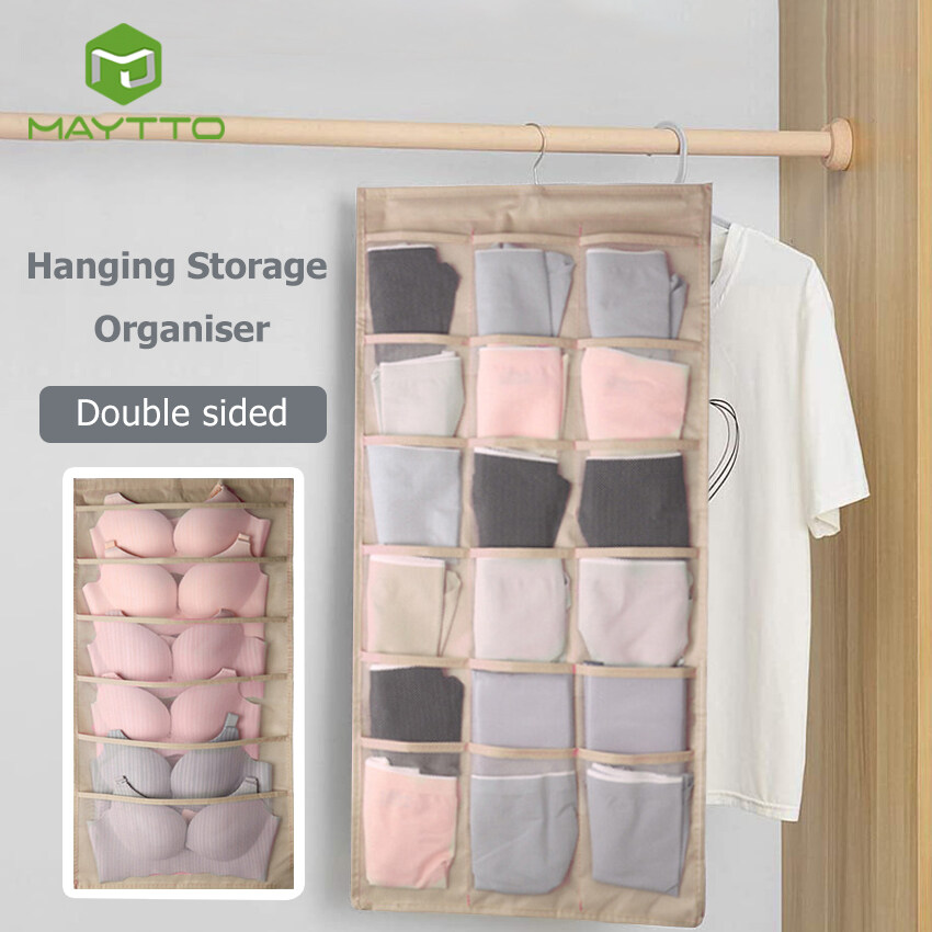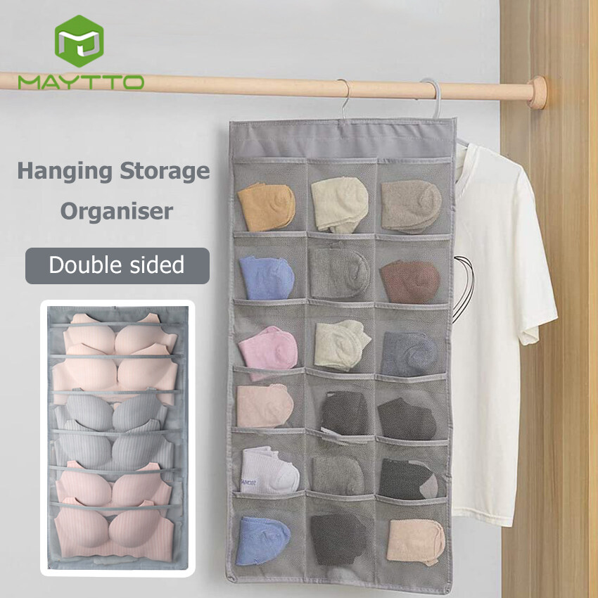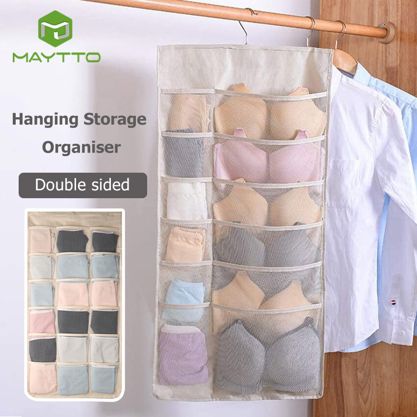 MAYTTO Dual Sided Hanging Pockets Wardrobe Organizer Underwear Storage Closet Mesh Organizer for Stocking Bra Sock and Toiletries Accessories Washable