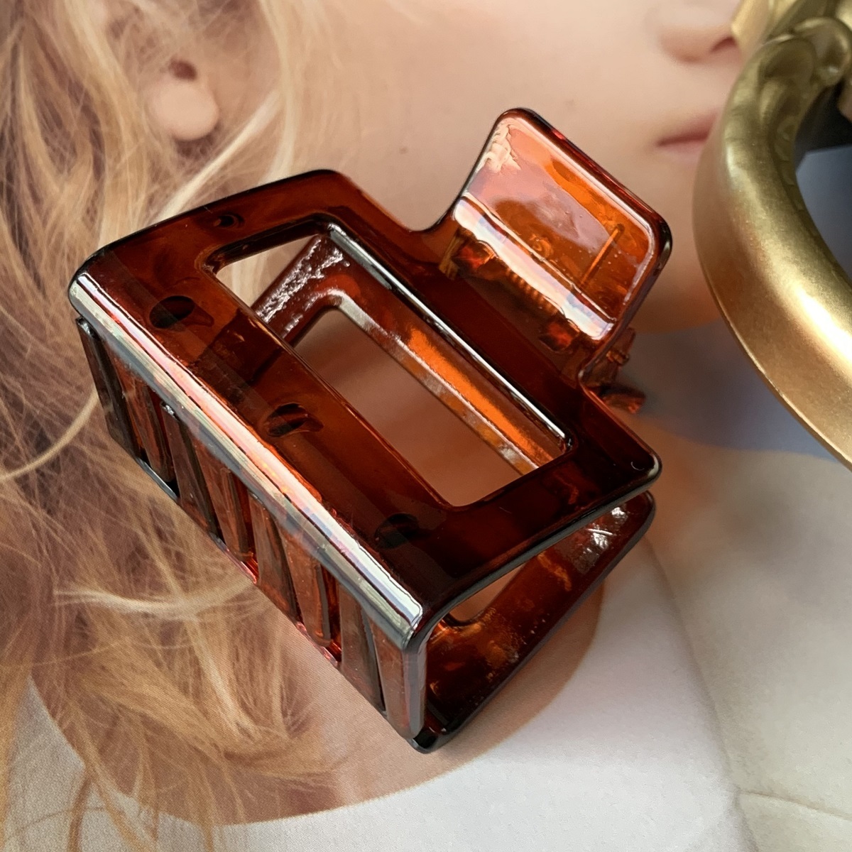 [SG Seller | Light & Tight] 5cm Medium Size Korean Vintage Amber Acrylic Hair Claw Grip Clip, texture hollow ins high-quality hairpin top clip for women