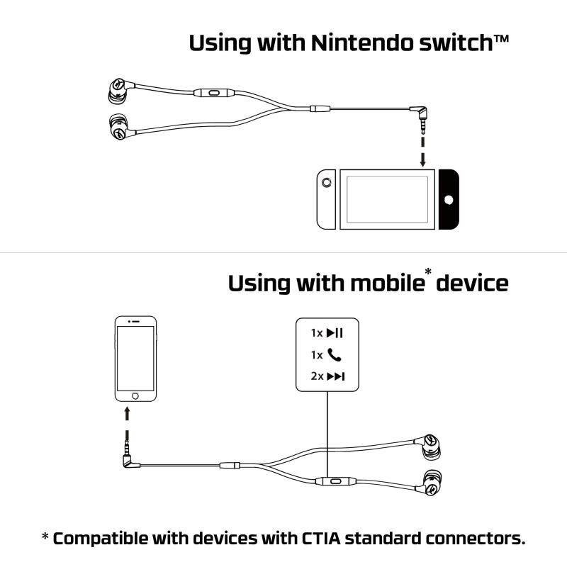Original HyperX Cloud Earbuds Gaming Earphone With Mic In-Ear Headset Immersive In-game Audio Earphone for Nintendo Switch