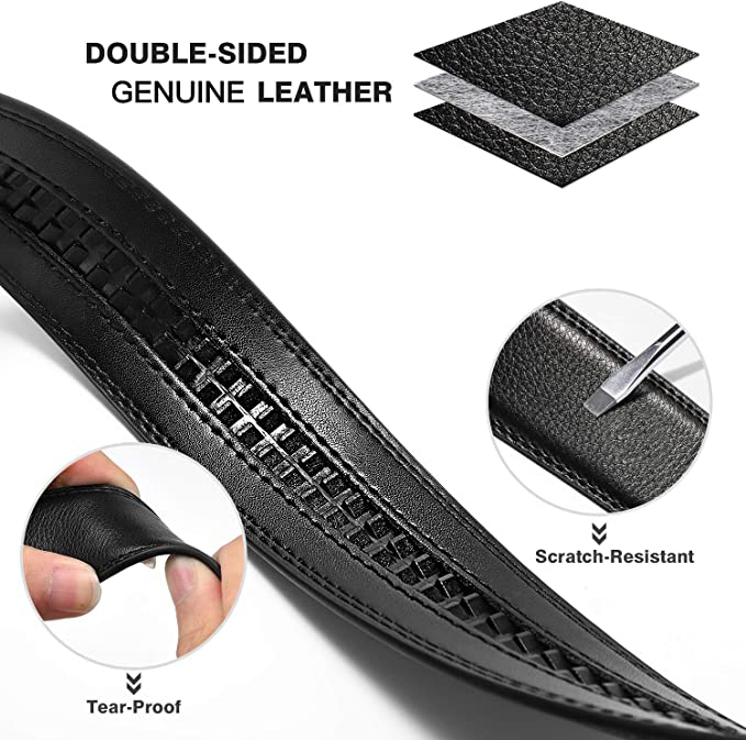 Men 3.5cm Dress Belts, COWATHER Ratchet Genuine Leather Casual Belts Slide Casual Classic Leather Belt for Men with Automatic Lock Buckle. Size Customized