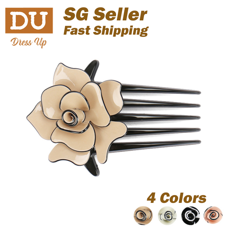 [SG] 11cm Camellia French Pleat Hair Style Hair Comb, 5 Teeth Elegant Stewardess Hairstyle Hair Comb Clip
