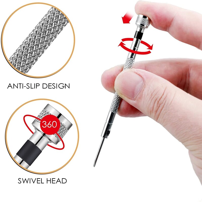 Multiple function: screwdriver repair kit is not only suitable for watch repair, watch battery replacement, wrist bracelet screw-button disassembly, glasses repair, jewelry work and electronic repair, but also fit for various watches, glasses, straps, hands and accessories; Each screwdriver is equipped with a spare blade replacement