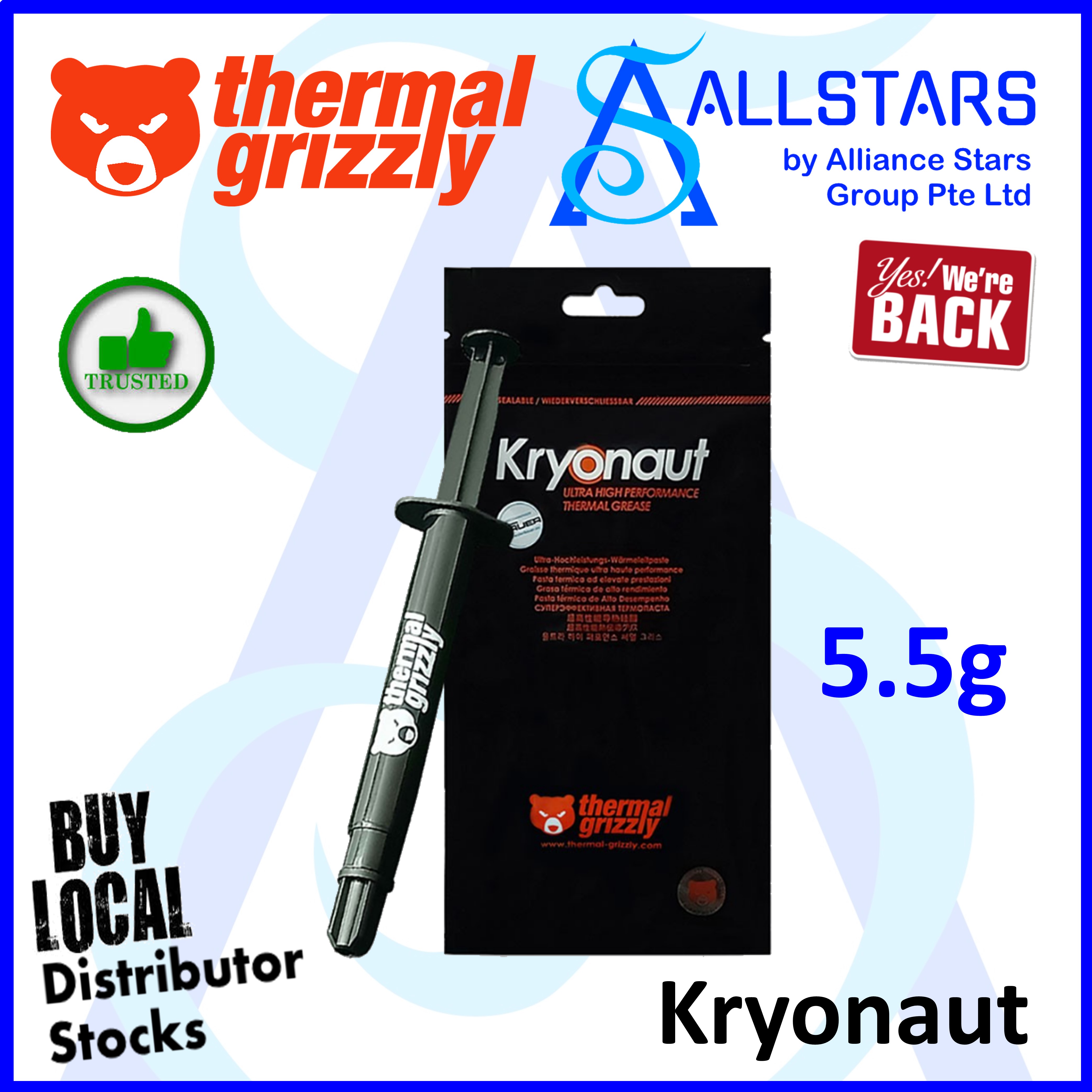(ALLSTARS : We are Back / Promo) Thermal Grizzly Kryonaut 1g / 5.5g Ultra High Performance Thermal Grease (TG-K-001-RS) / (TG-K-015-R)