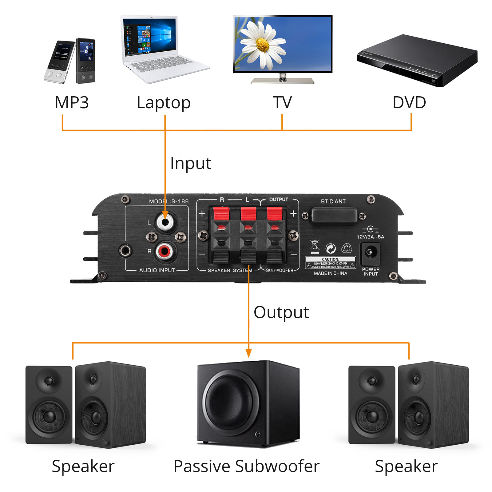 1. This product is a power amplifier and cannot make sound by itself. It must work with the speaker