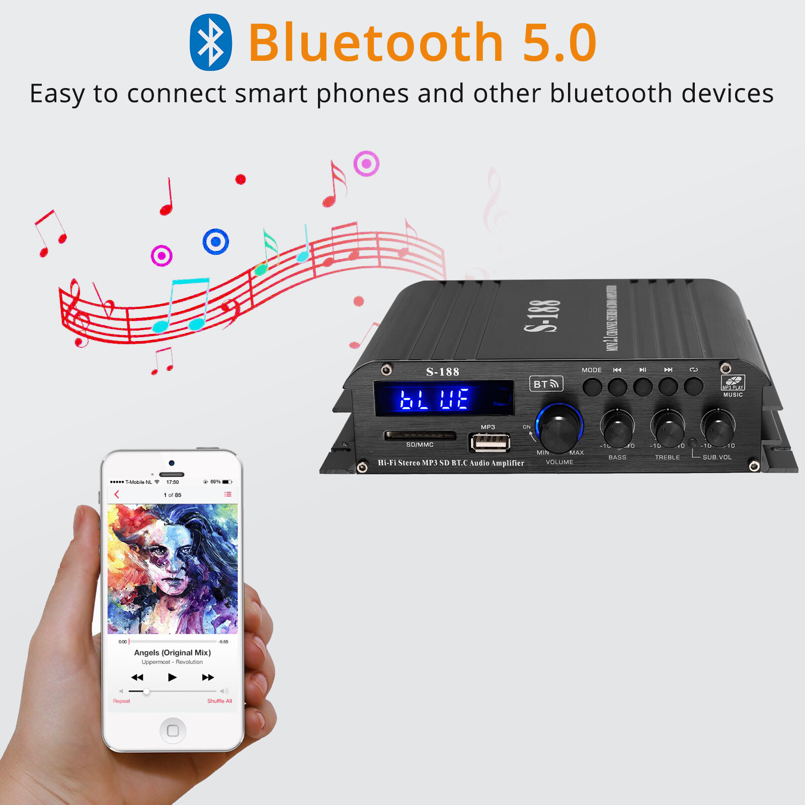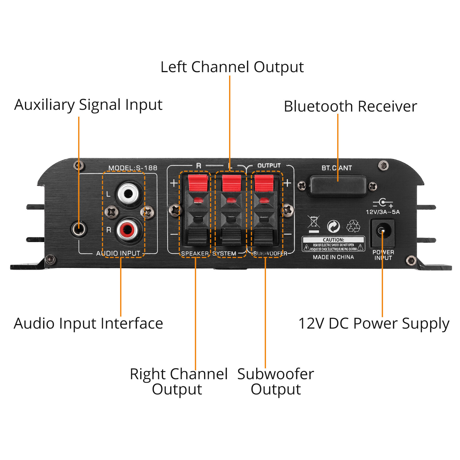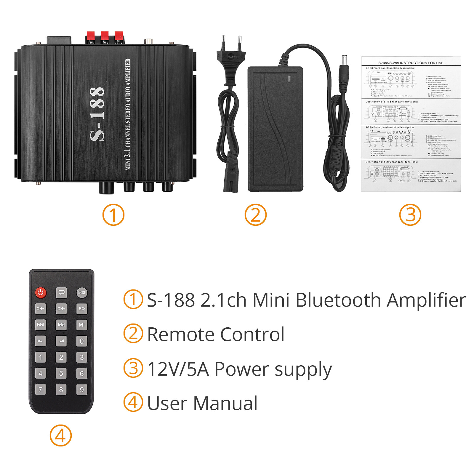 1 X S-188 2.1ch Mini Bluetooth Amplifier