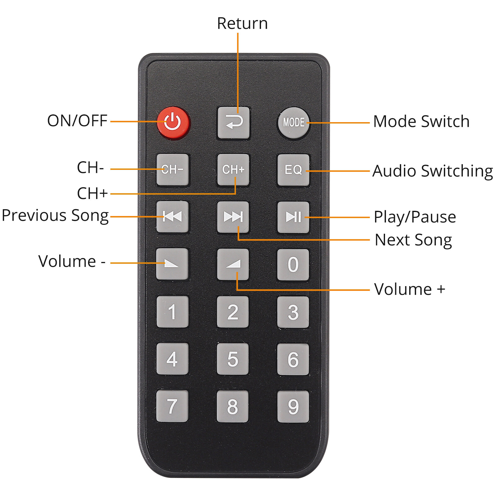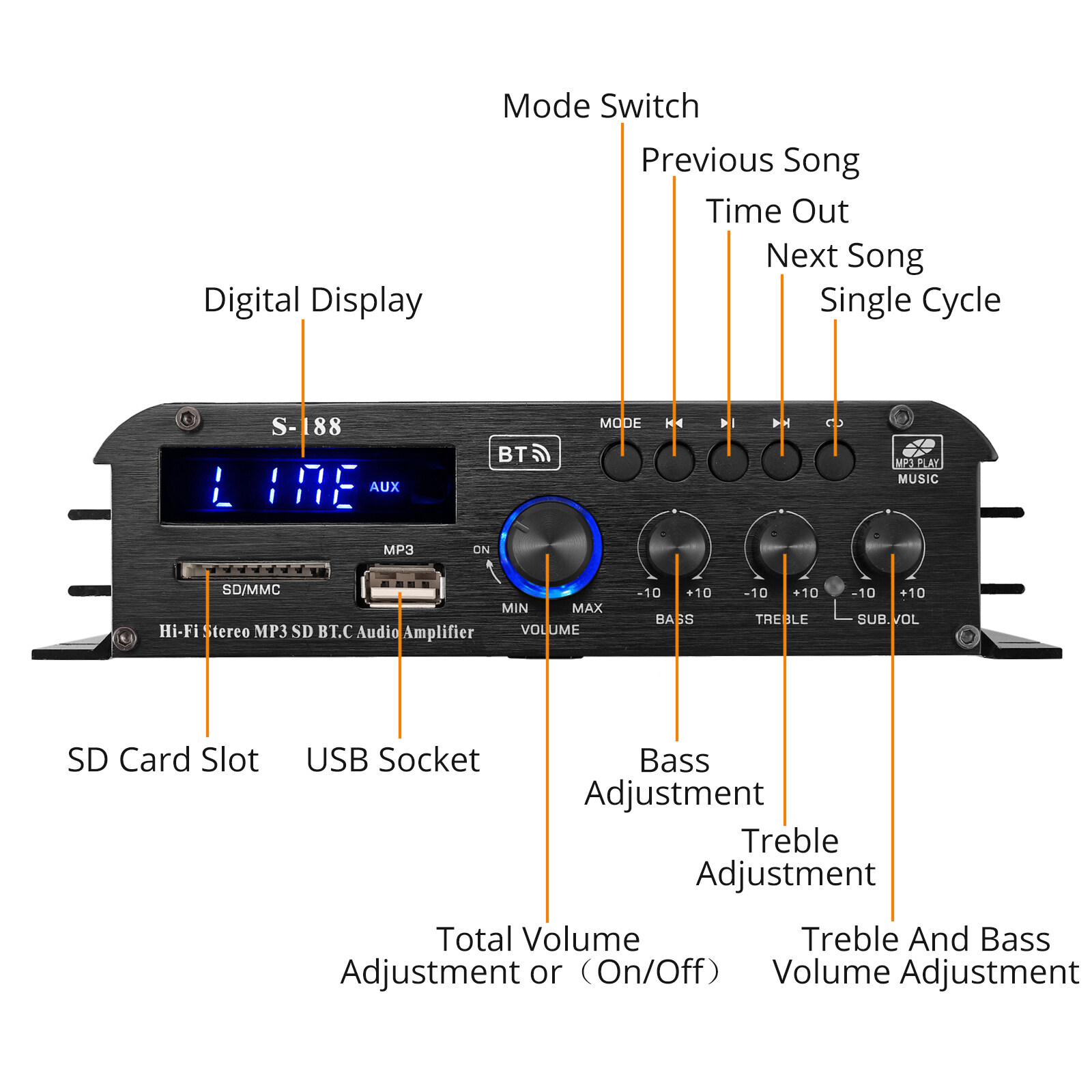 Supports: Bluetooth, Loudspeaker, Remote Control, SD Card Music Playing