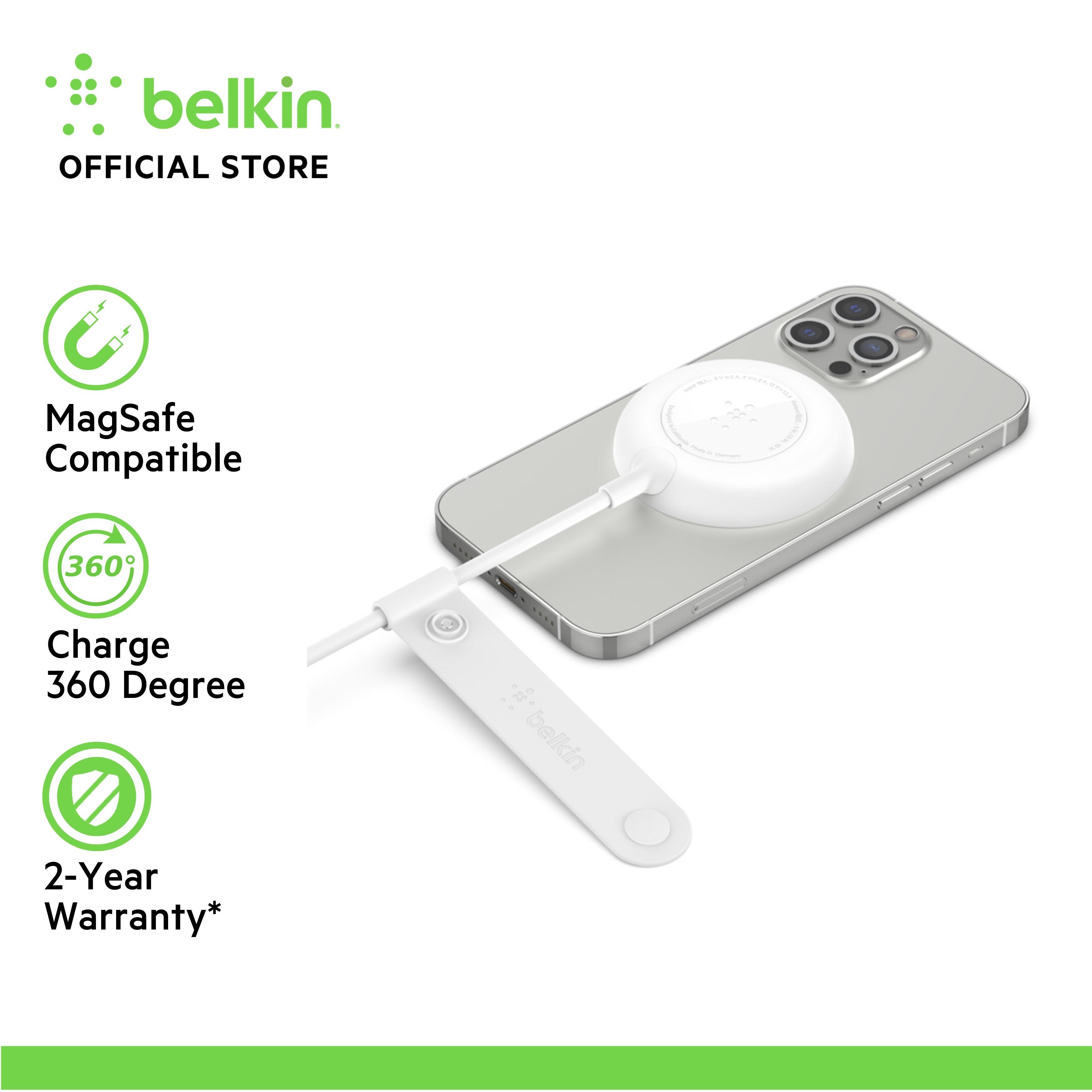 Belkin MagSafe Compatible Magnetic Wireless Charging Pad Fast Charging Compatible with iPhone 14 / 13 / 12 Series 7.5W Cable with 2m Black BOOST↑UP™ WIA005dqBK with Power Adapter