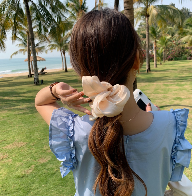 [SG | Large & Fluffy] Vintage BIG Satin Scrunchies Women Hair Ties - Big Scrunchy Hair Bands Elastic Hair Accessories Soft Large Scrunchies For Girl Women