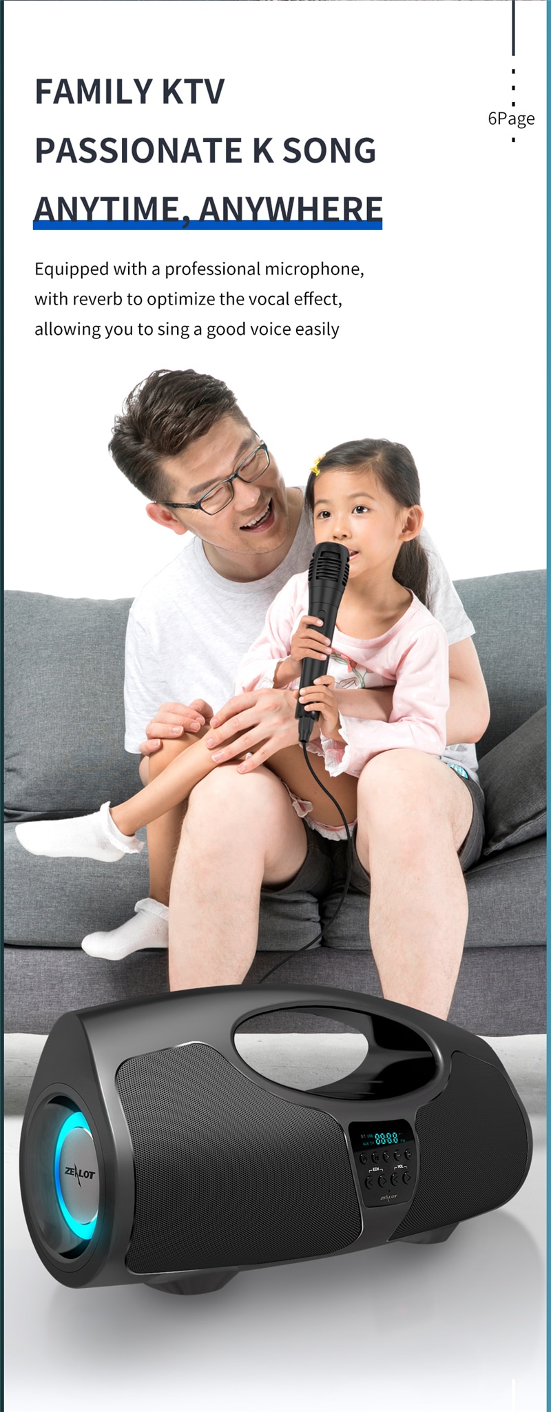 Zealot P1 Karaoke Bluetooth Speaker with FREE MICROPHONE Audio Center Portable Sound Box Powerful Subwoofer For PC Computer 40W Subwoofer IPX5 Waterproof,12H Playtime