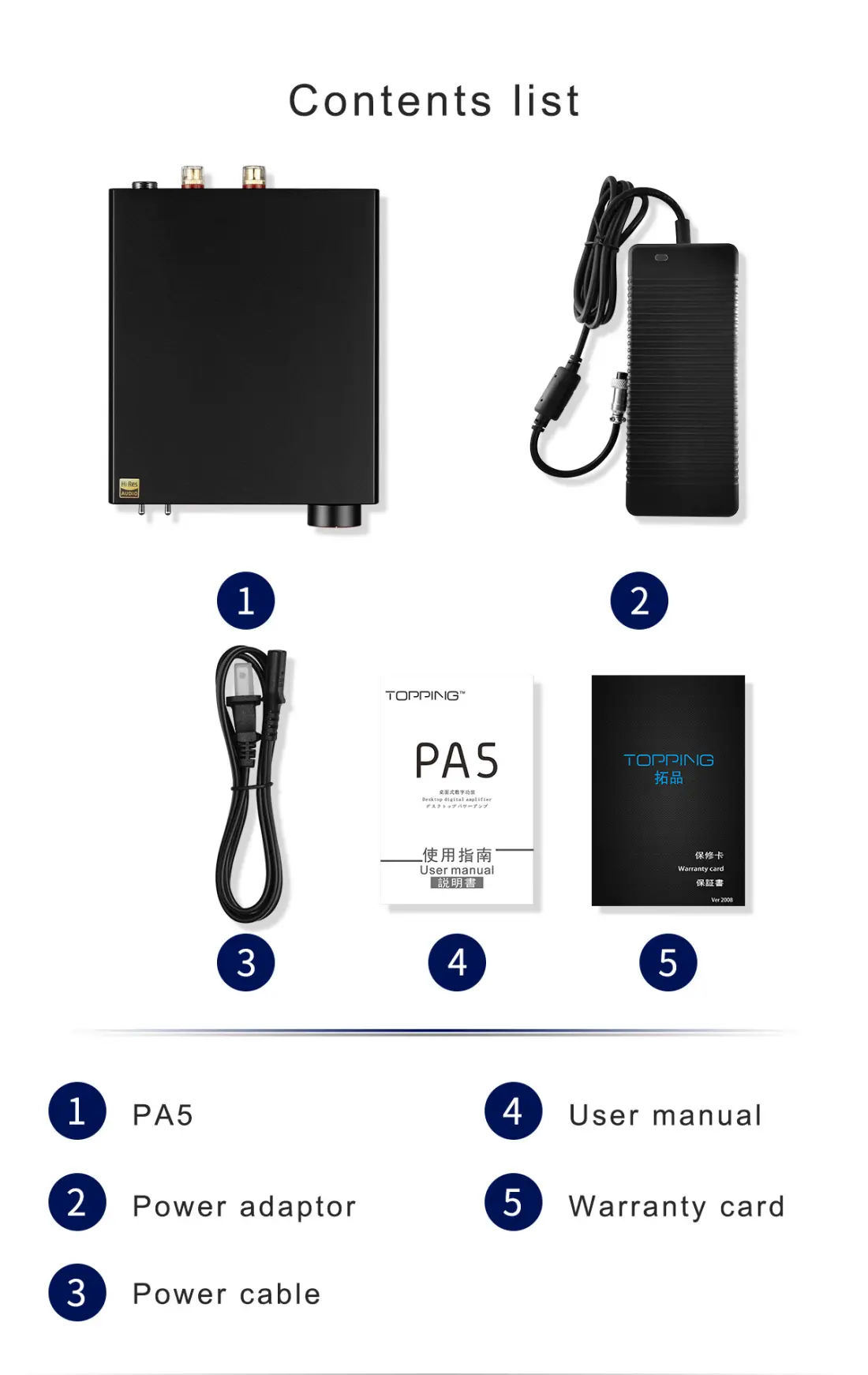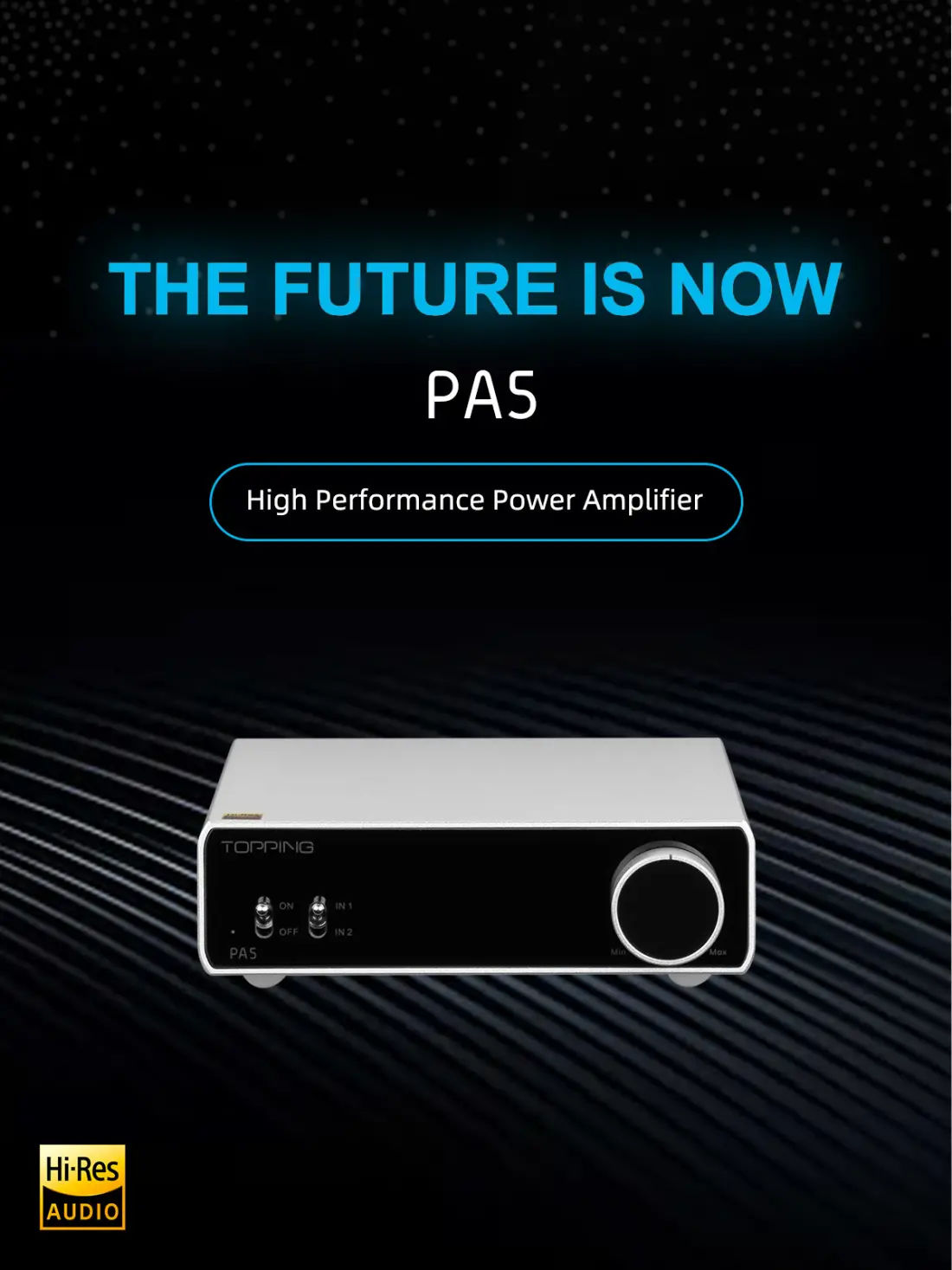 >PA5 features Topping's newly developed Class D power amplifier circuit that delivers outstanding signal amplification with ultra-low distortion and high SNR values. PA5 is an ideal power amplifier as it maintains the true high-resolution clarity of the sound signal and makes it ready for powerful HiFi speakers.