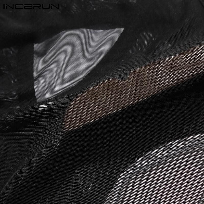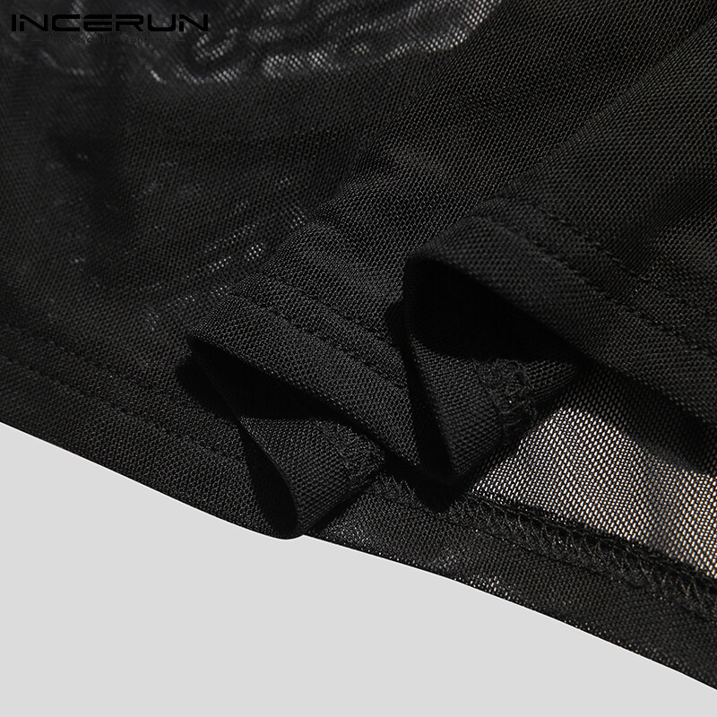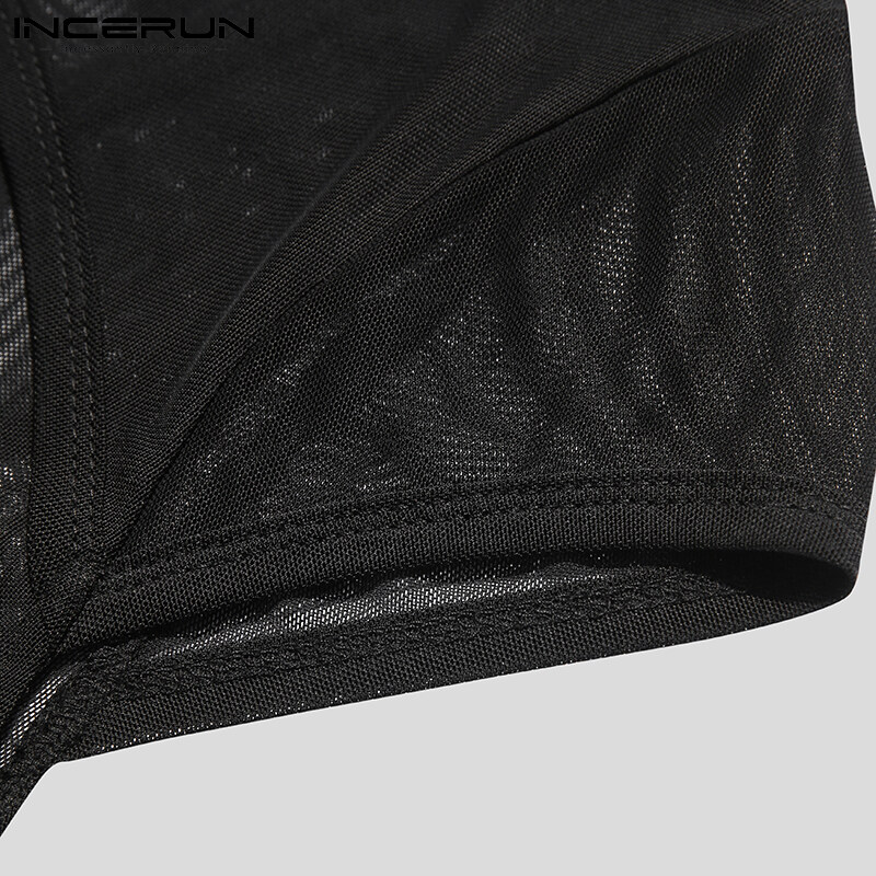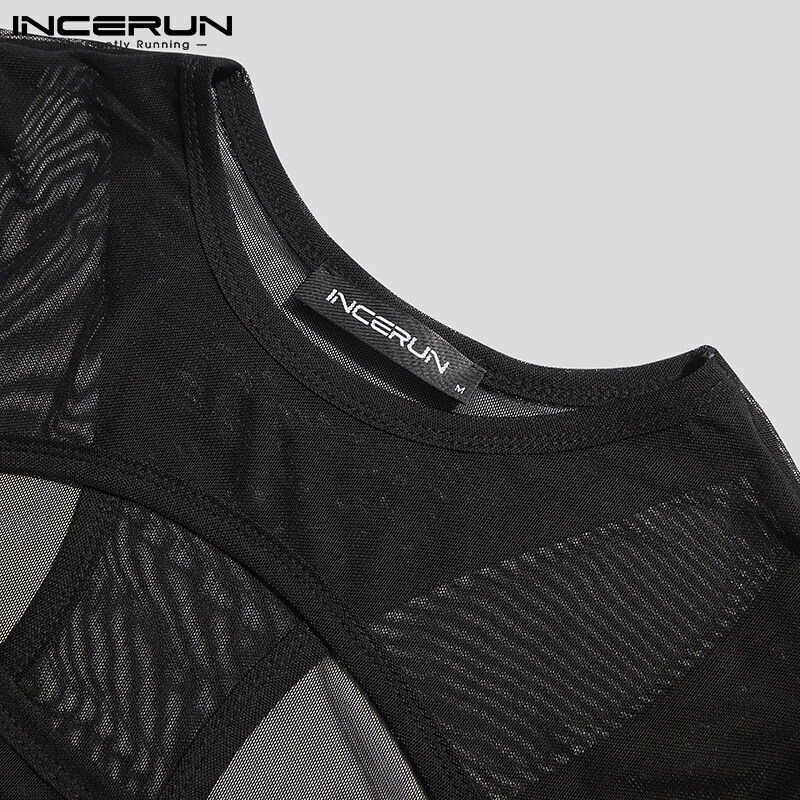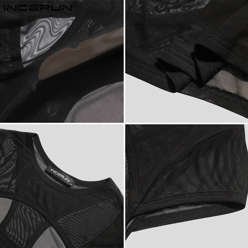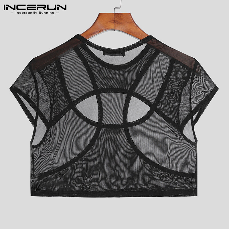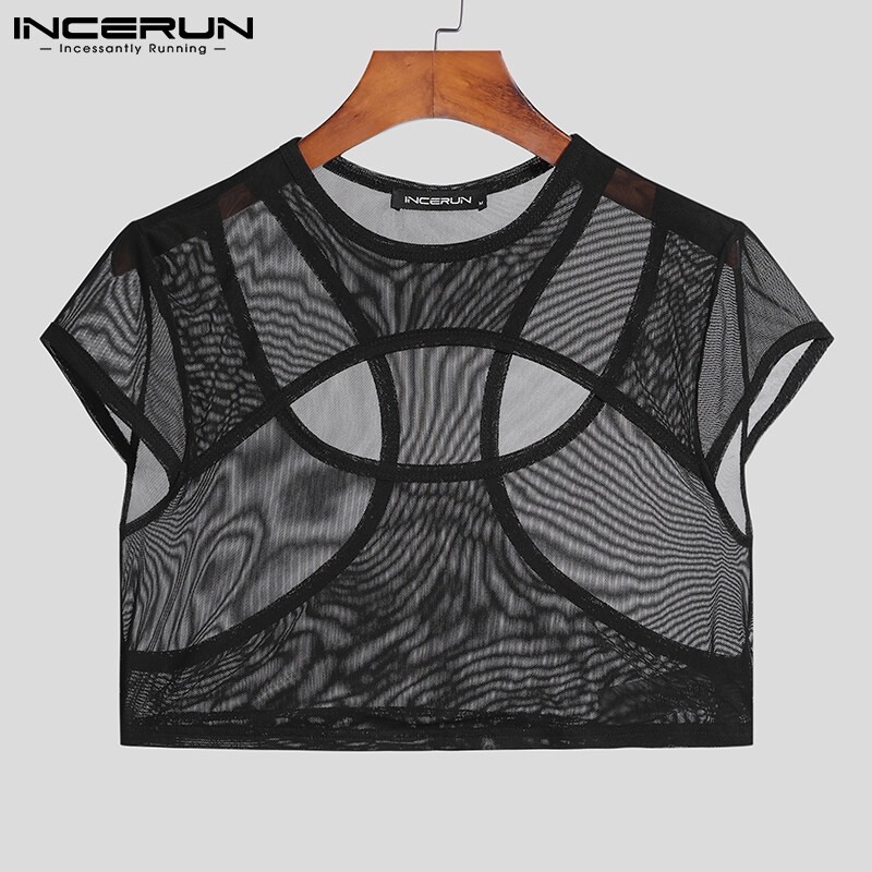 (Western Mesh Style) INCERUN Mens Gothic Punk Short Sleeve Hollow Out Crop Top Fit Party Stage Costume