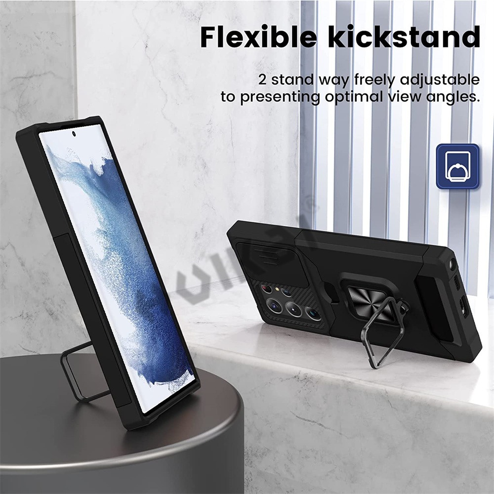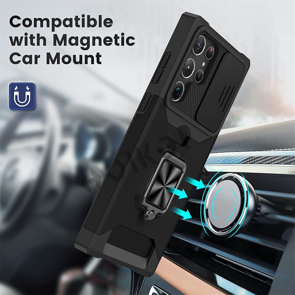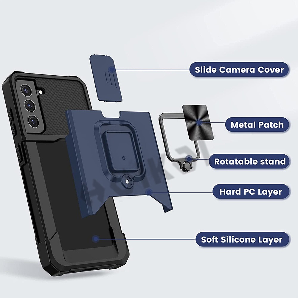 [SG] Samsung Galaxy S22 5G / S22+ 5G | S22 Plus 5G / S22 Ultra 5G / S21 FE 5G / S21 Fan Edition 5G Case - Sliding Camera Protector Shockproof Hybrid Armor with Magnetic Ring Kickstand Cover Casing