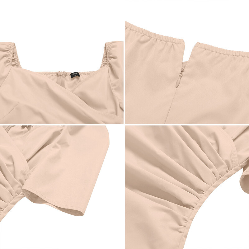 Features: Pleating,Puff Sleeve
