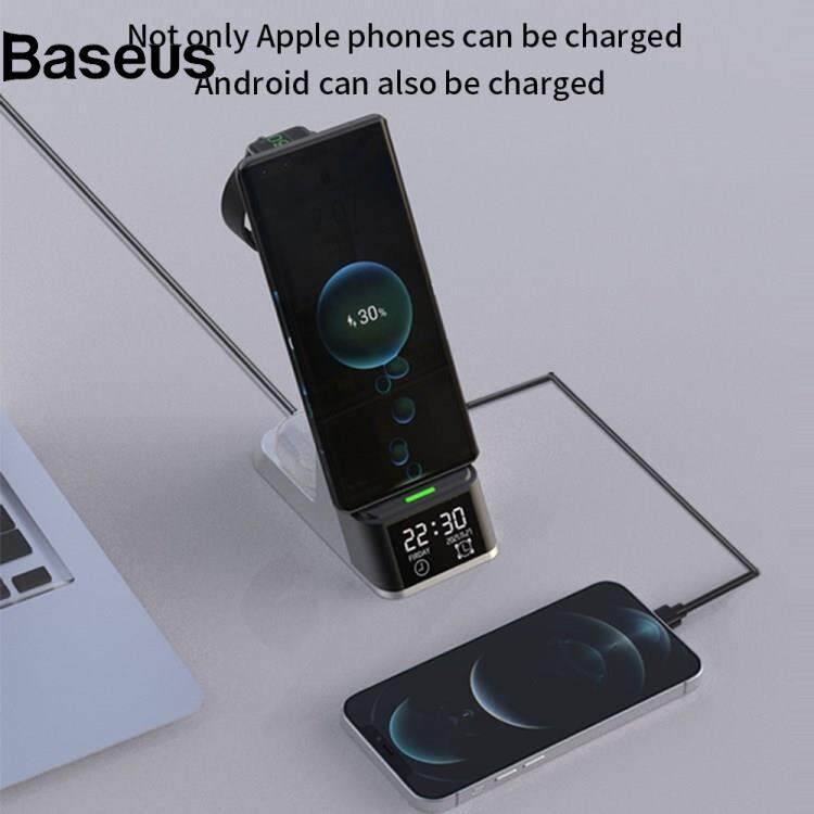 Multi-functional wireless charger base, which supports charge smartphones (15W)/watches (magnetic-absorbed charging, 2.5W)/earphones (3W)