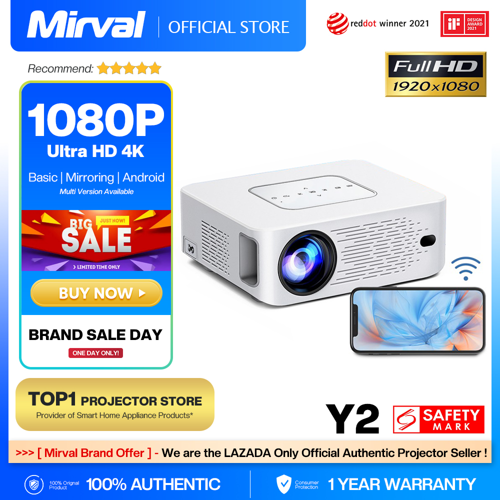 【4K Projector】Mirval Y2 Ultra HD Daytime Full HD 1080P 4K Smart Wifi Android LED Home Theater Projector Office Classroom