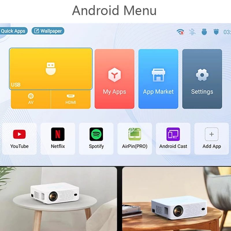 【Android OS】Mirval A9 Android System LED 1080P Projector WiFi Bluetooth Portable Full HD 3500 Lumens Mini Home Theater Projectors