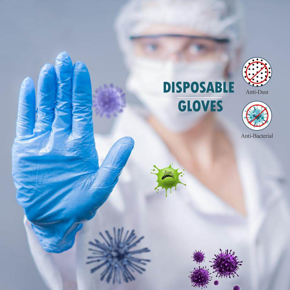 QUEBEE Vinyl Blue Synthetic Powder Free Disposable Gloves (100PCS/Box)