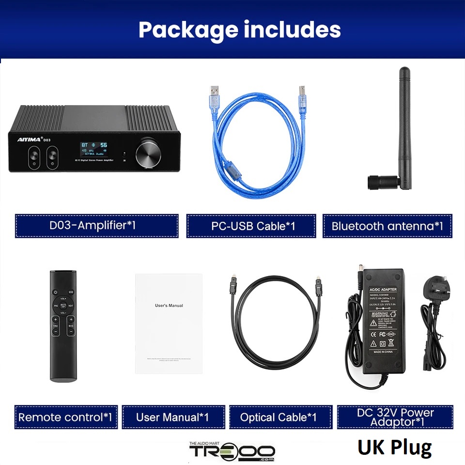 AIYIMA D03 Wireless Bluetooth Receiver/Streamer & Hi-Fi Integrated Amplifier (Official local stock - SG/UK plug)