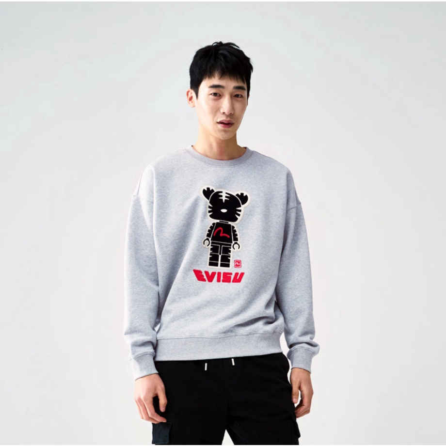 This is an overfit casual man-to-man t-shirt that points evisu's tiger character using froofi techniques and embroidery.