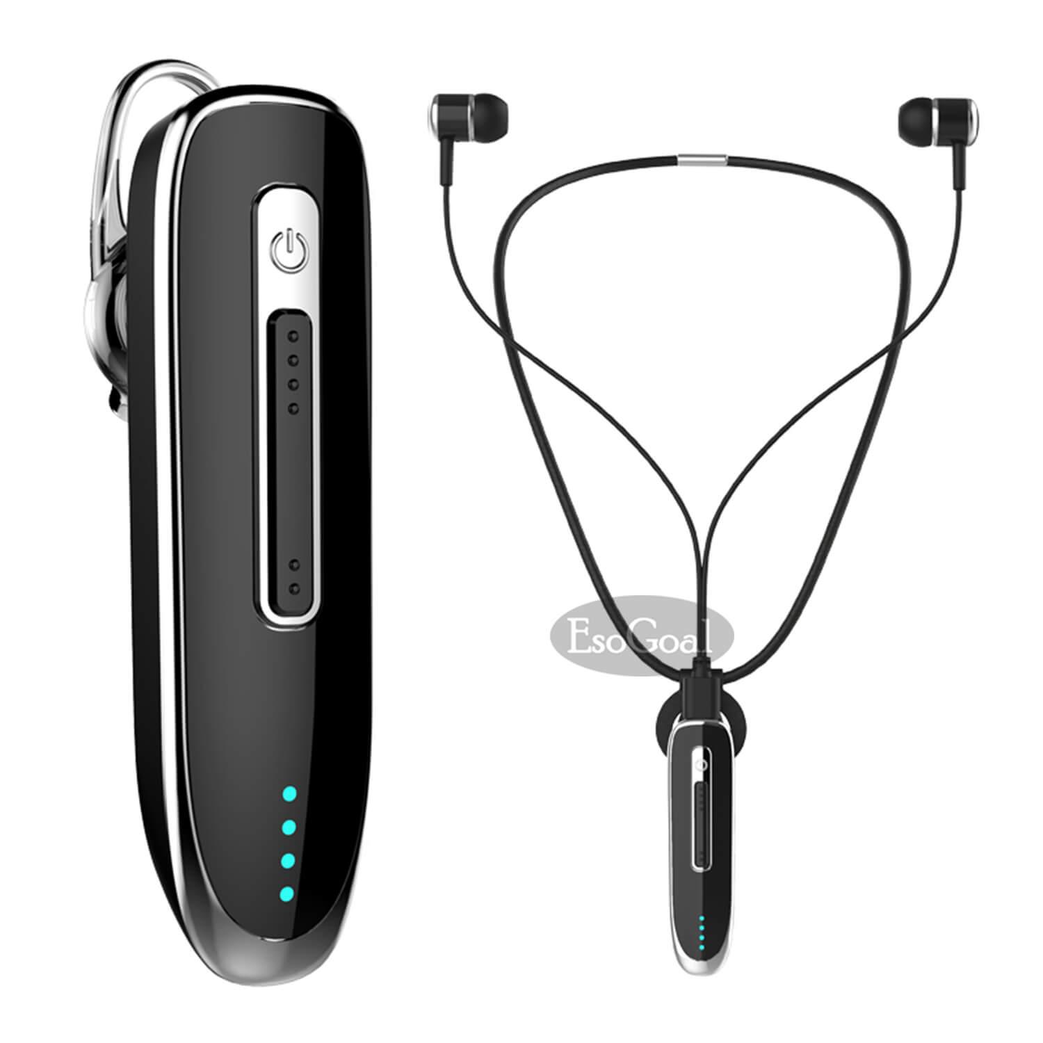 EsoGoal Wireless Earbuds Business Bluetooth Headphone Earpiece Headsets with Mic, Extra Long Standby 36 Hours Talking Time Stereo Hands-Free In Ear Headphone with External Wired Earphone for Smart P