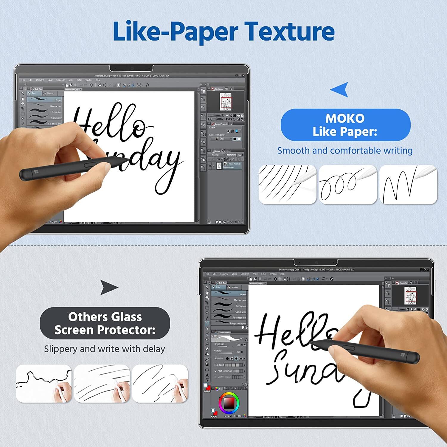 Compatibility MoKo Like Paper screen protector designed specifically for Microsoft Surface Pro 8 13-Inch 2021 / Surface Pro X. The slide of the pen feels just like you're writing on paper.