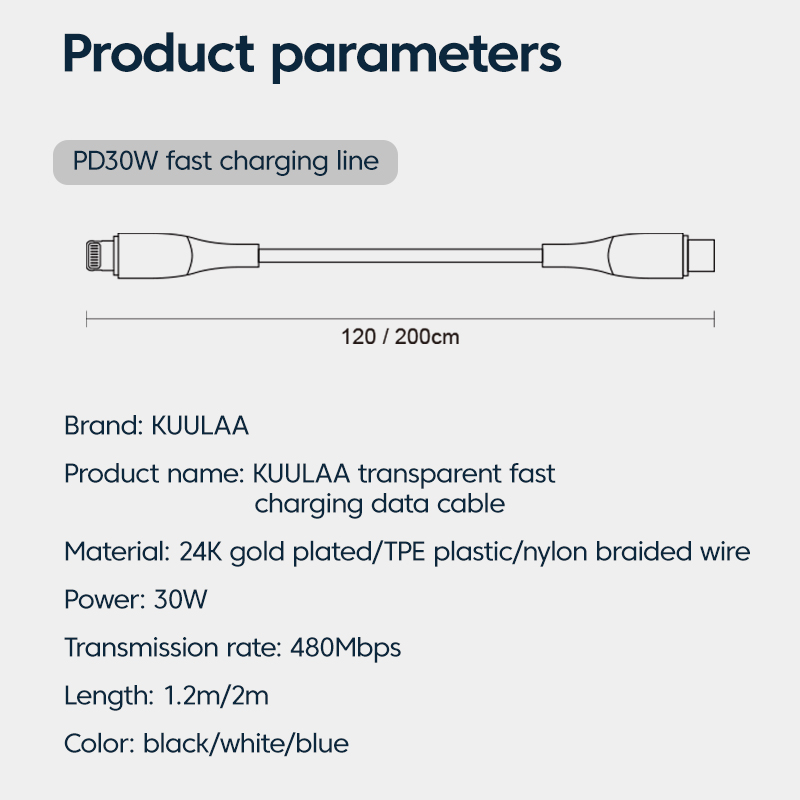 KUULAA 30W USB C to Lightning Cable for iPhone 14 13 pro max PD Charger 30W Max for iPhone 12 pro max 11 8 7 Fast Charger Data Cord for Macbook iPad USB-C iPhone Cord Apple Cable Transparent Data Cable