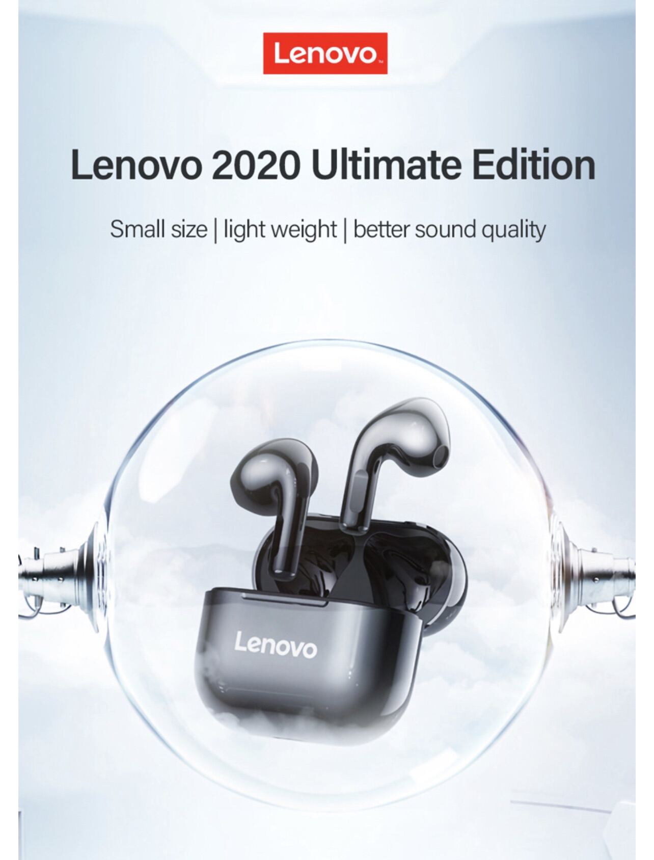 Lenovo LP40 Wireless Earbuds Bluetooth 5.0 Headphones in-Ear 25H Playtime USB-C Fast Charge Wireless Earphones Deep Bass Touch Control IPX5 Waterproof Sport Wireless Headphones (Black/White)