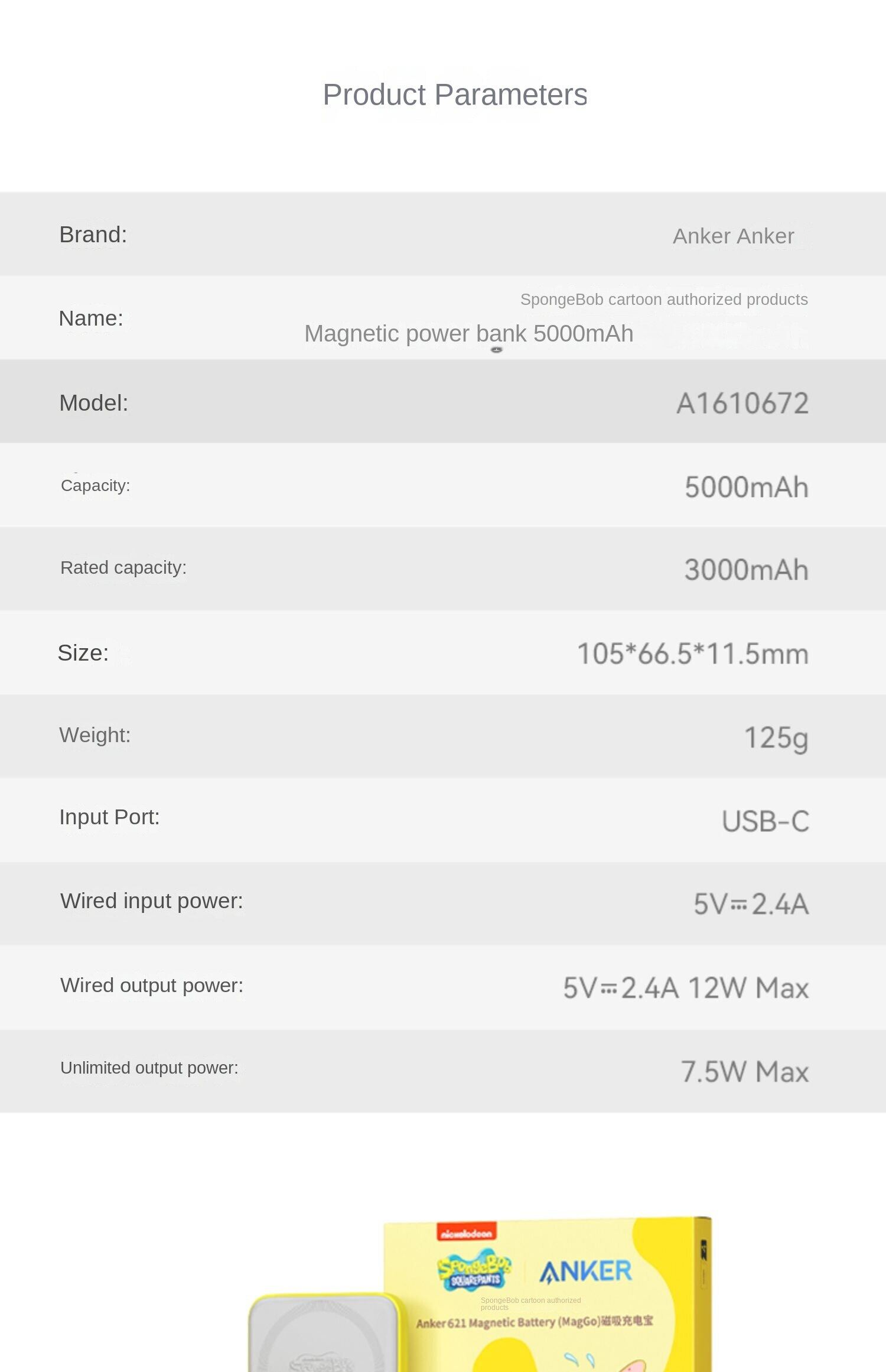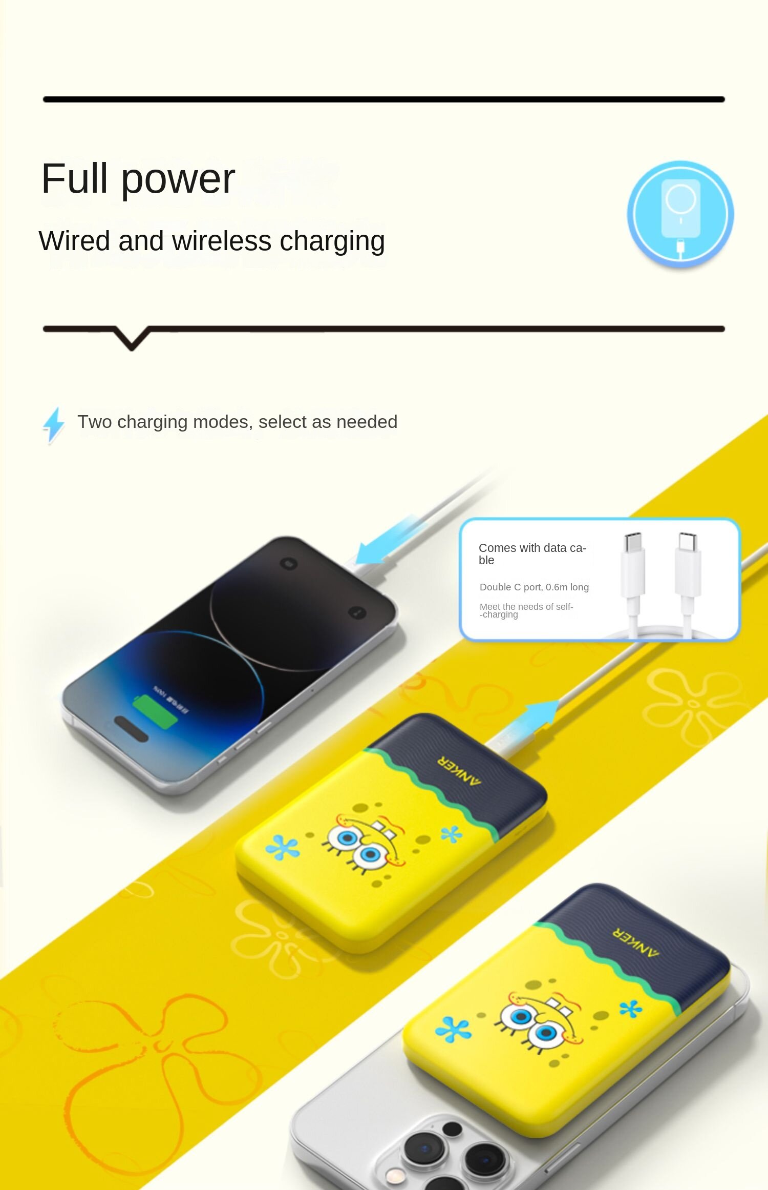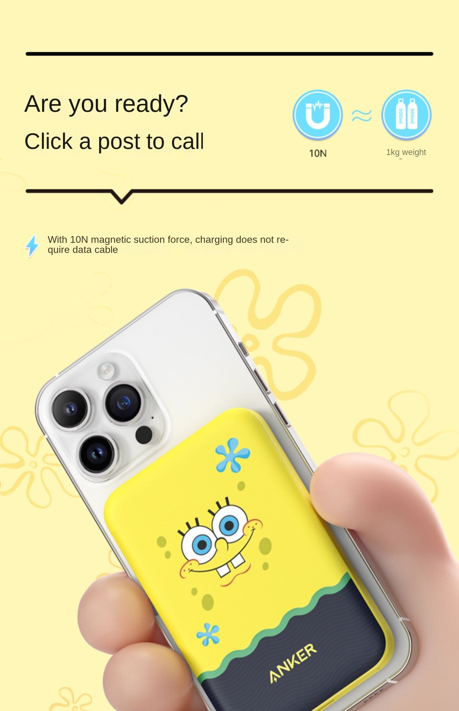 Anker 621 SpongeBob MagGo Magnetic Wireless Charging Treasure 5000mAh Mobile Power Fast Charging