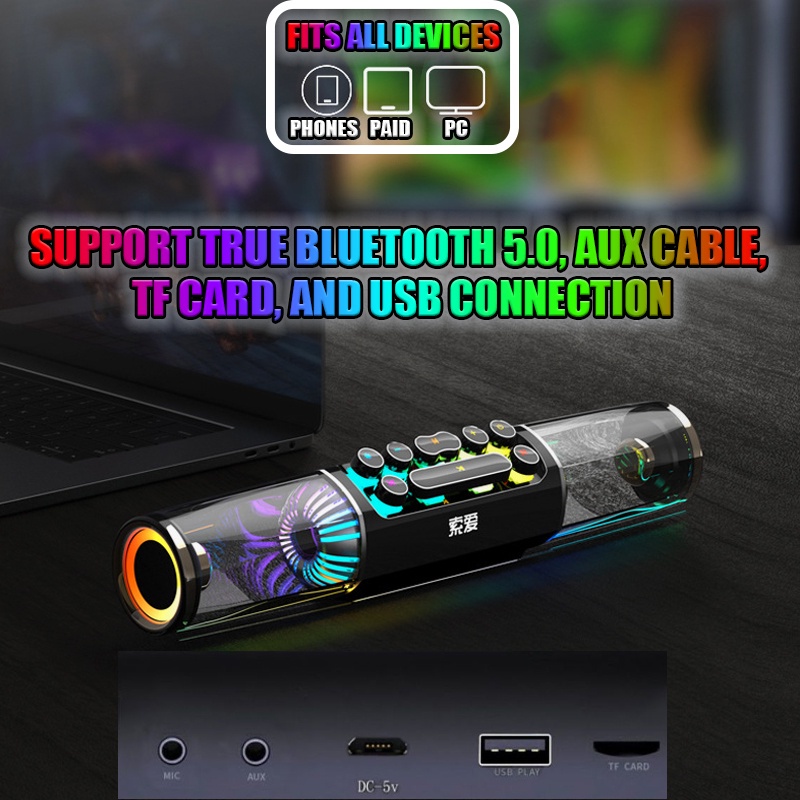SOAIY SH19S High-power RGB Bluetooth Speaker Mechanical Keys 3D Surround Gaming PC Computer Bass Soundbar Subwoofer