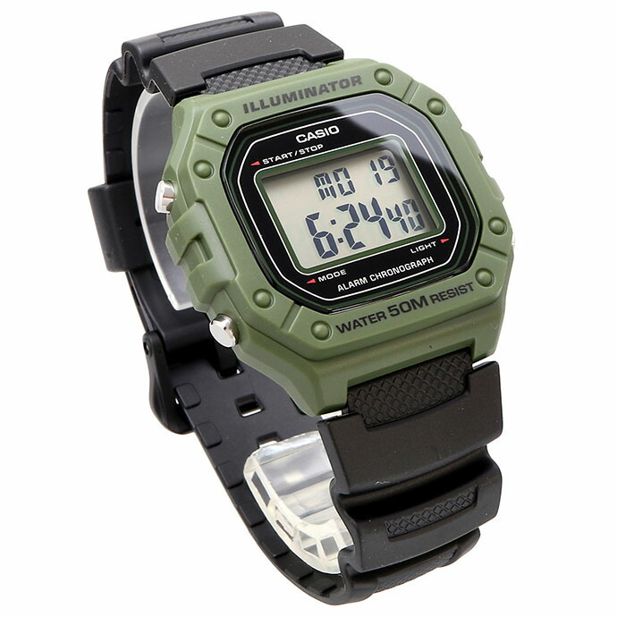 [Vinstore] Casio W-218H Green Resin Digital Sports Army Men Watch W-218H-3AVDF W-218H-3A W-218H-3AV