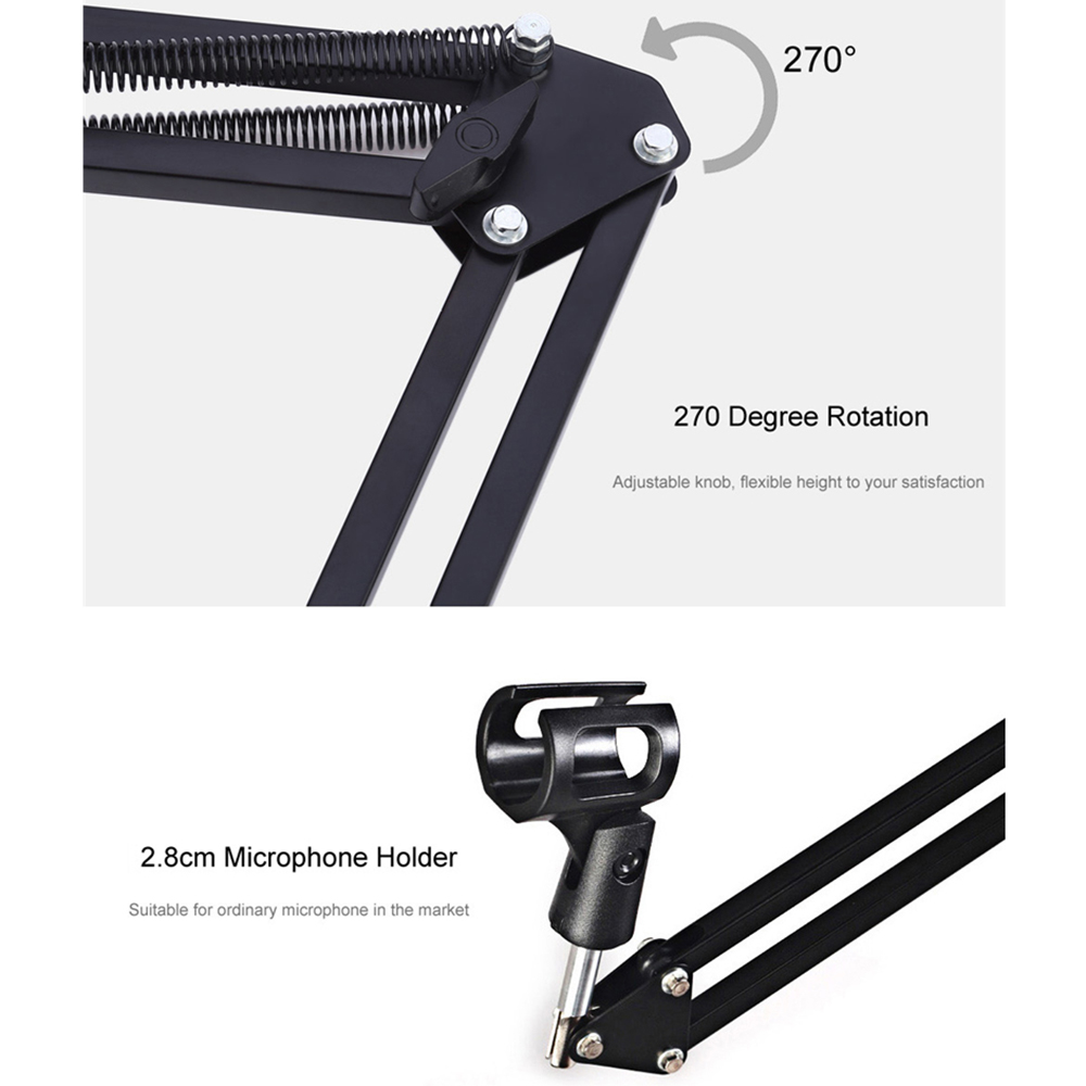 eDSLRS Adjustable Microphone Stand Suspension Boom Scissor Arm Mic Bracket Metal with Microphone Holder for Studio Recording Live Video Broadcasting Online Singing