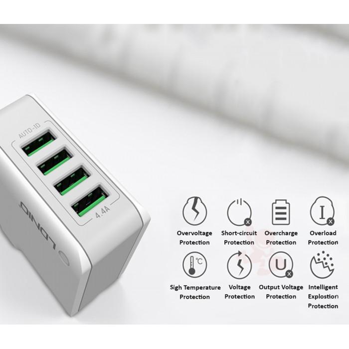 LDNIO 4.4 A USB charging four head phone tablet travel charger A4403 straight general fast