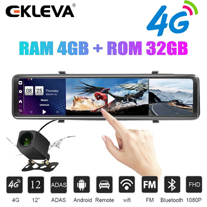 EKLEVA 3 Split Screen 12 4G Android 8.1 Car Rearview Mirror Camera RAM + ROM 2GB+32GB/4GB+32GB Dual Lens DVR ADAS WiFi BT 4.0 Dash Cam Video Recorder