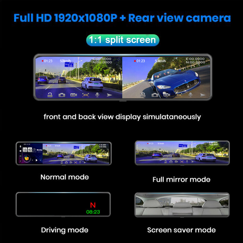 With a bigger screen, see wider rear view 3 times display than 10inch car dvr and original car mirror, fewer blind spots, more safety.