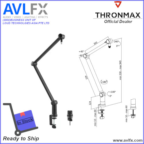 The THRONMAX Zoom S3 is an adjustable boom arm for USB microphones. Use it to keep your microphone firmly in place while you stream, podcast, or broadcast, doing so with a professional appearance at all times.