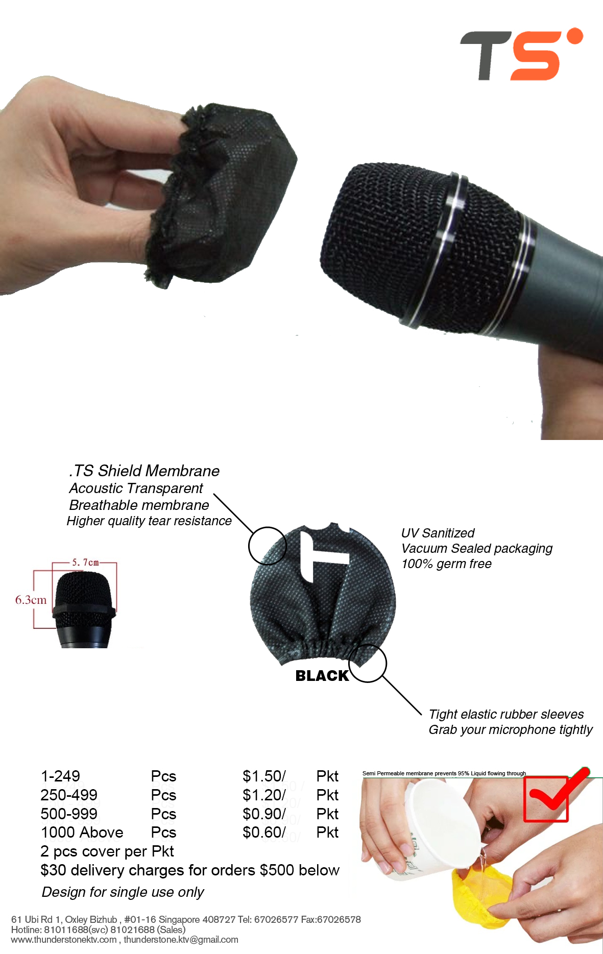 50pcs disposable covers handheld microphone Charcoal Black single use HygenX 100% Biodegradable NatureWeave Fiber, Sanitary,