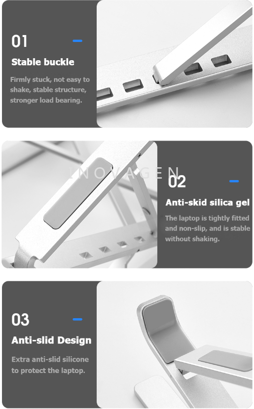 INOVAGEN Up to 310mm Double Height Adjustable Aluminum alloy laptop stand Portable Foldable Cooling design up to 17.3inch Laptop Tablet Stand