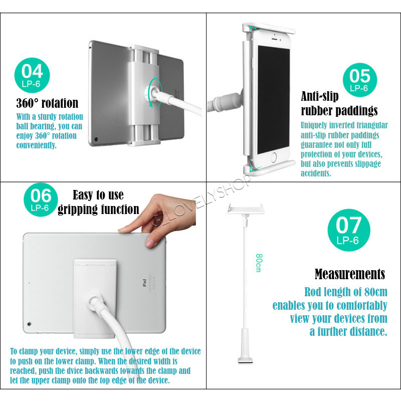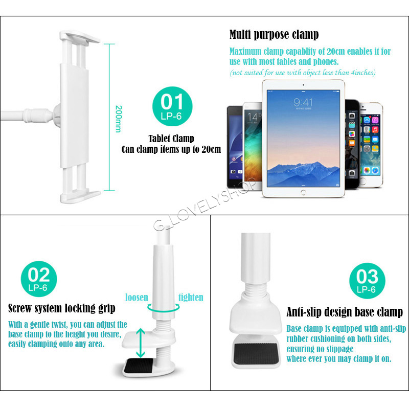 Easy to Install - The holder has a strong clamp to hold your Phone securely. It's easy to attach on furniture such as table and bookshelf and will not damage the surface.