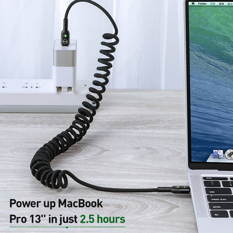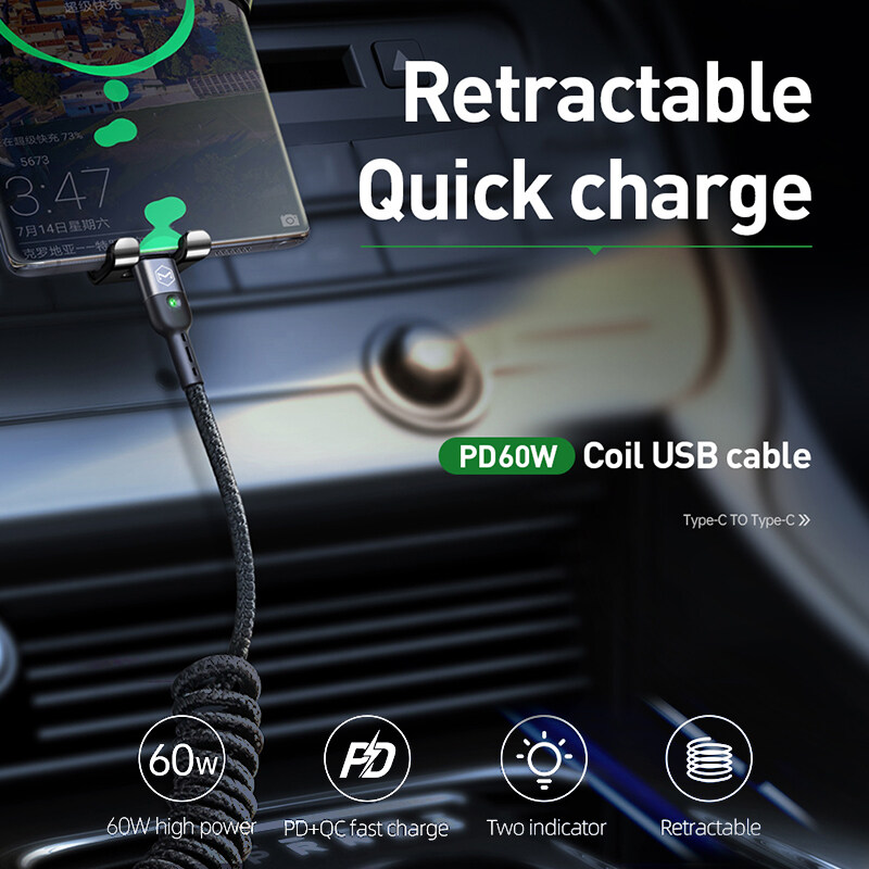 Mcdodo Retractable Car Spring Type C To Type C 3A Cable For Samsung Xiaomi Huawei PD 60W 3.0 Fast Charge Cable For Macbook Pro